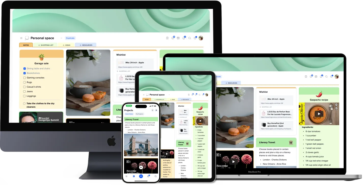 Capture notes, checklists, links, images, and files on freeform pages. Organize content in diverse formats to align with your natural thinking process.