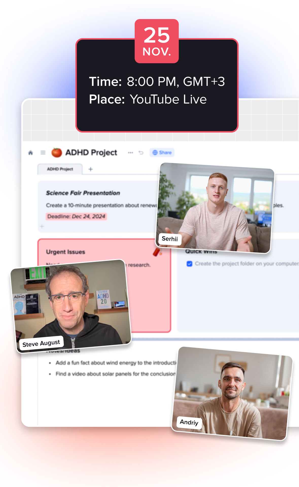 This live session is led by Steve August, ADHD productivity coach and founder of the ADHD Entrepreneur Accelerator.